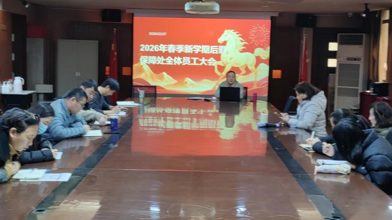 随后,周维妍处长以各科室全局性重点指标任务为切入点,部署2026年处室重点工作。她强调,各科室需明确安全责任与机制,通过开展开学安全大排查、加强食品安全管理、强化各类安全措施,绷紧安全之弦、守牢底线红线,全面筑牢校园安全屏障;通过升级餐饮保障、优化公寓物业服务、精细化水电能源管理、提升维修响应速度等方式,聚焦主责主业,全面提升保障服务质量与效率。
