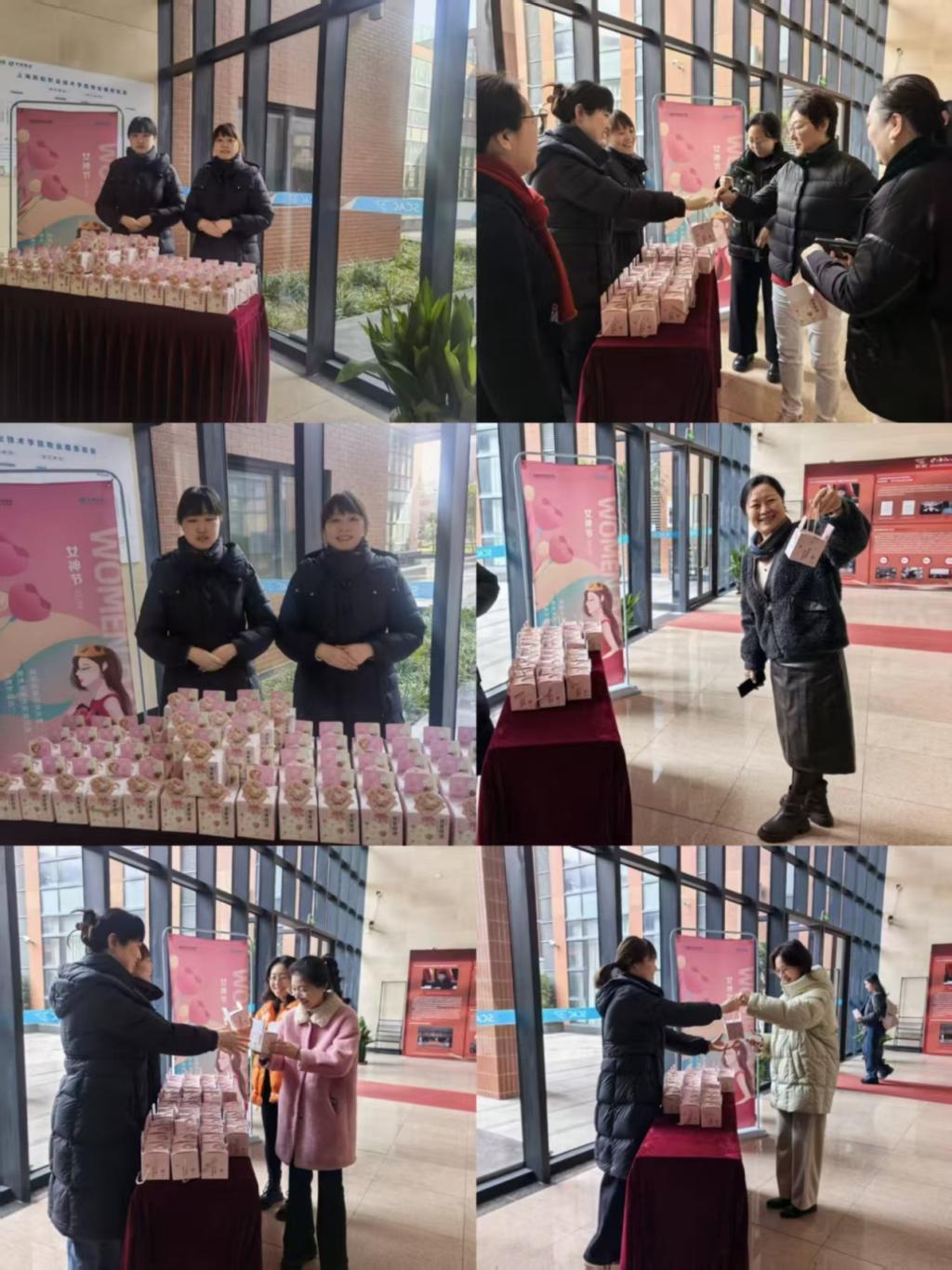 活动当日清晨,工作人员早早到岗就位,将节日礼品整齐摆放于两校区主要入口,以整洁温馨、喜庆祥和的面貌,迎接每一位到校的女教职工。礼品发放现场,工作人员热情主动、服务周到,对途经入口的女教职工逐一送上精美礼品与温馨祝福,一句句真诚的“节日快乐”,传递着对巾帼园丁的真挚敬意。针对未能在入口现场领取礼品的女教职工,工作人员主动走进办公室,逐一上门派送、送上专属关怀,切实做到不漏一人、温暖全覆盖。