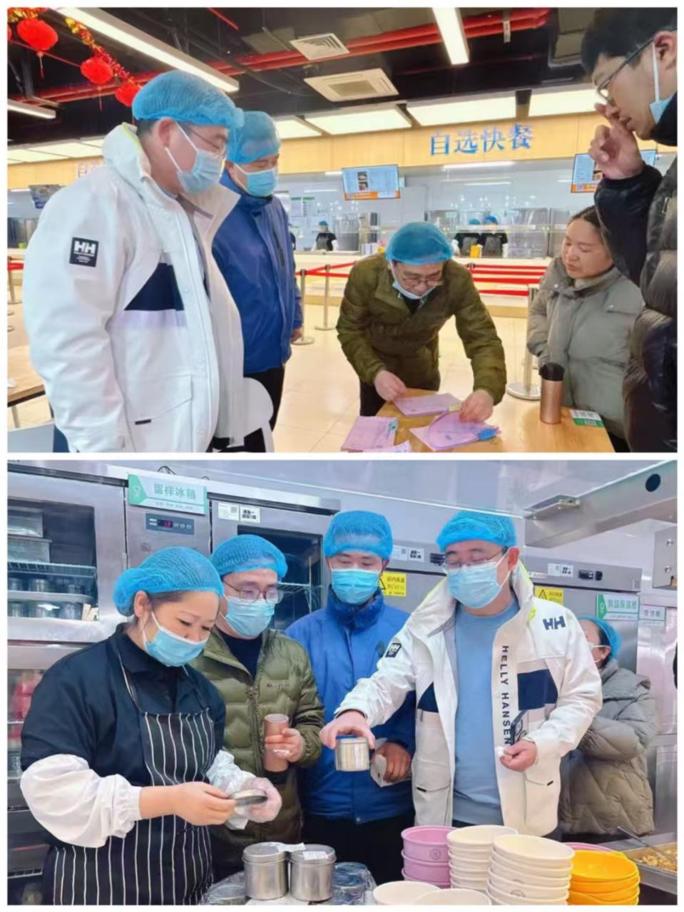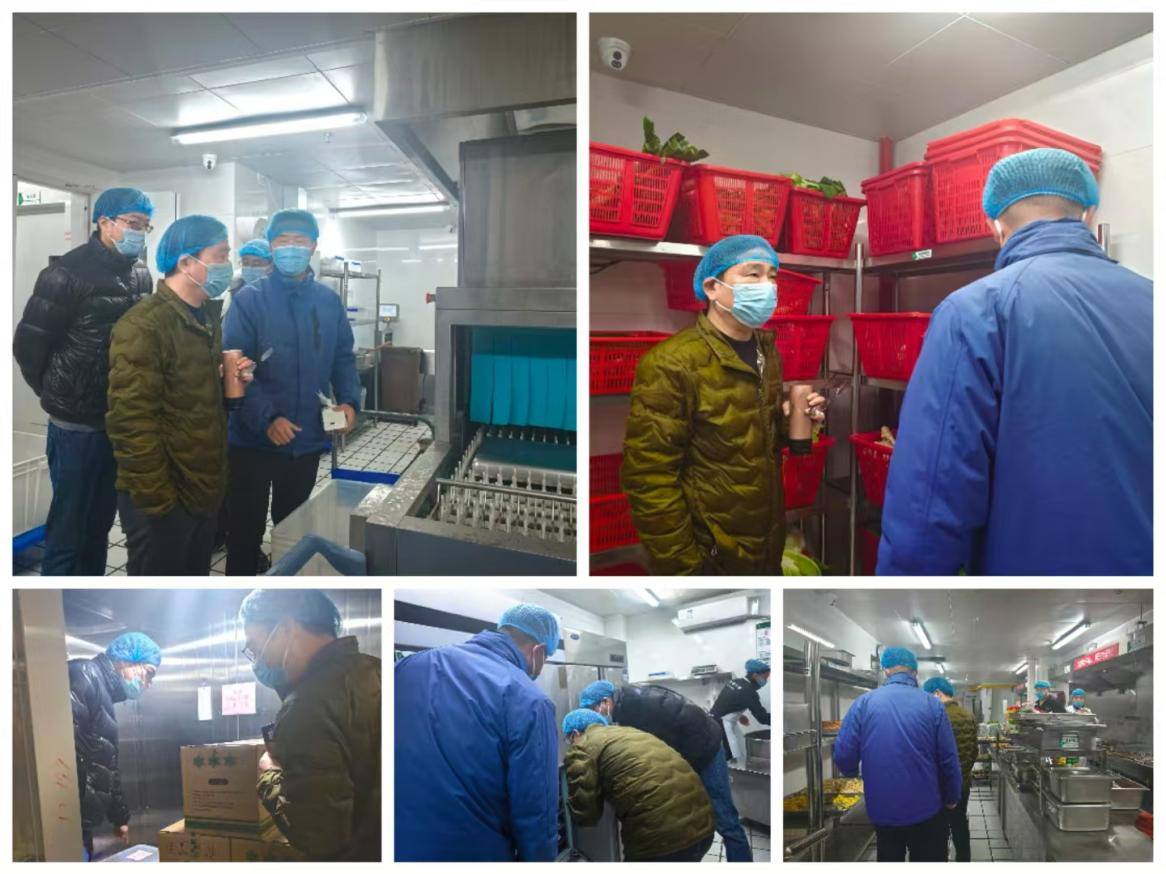 在主副食仓库,重点检查原料分类存放、离地离墙、先进先出、温湿度控制及防鼠防虫防尘设施,要求规范仓储管理、严控储存风险。在切配与烹饪操作区,细致查看生熟分开、色标管理、操作规范与环境卫生,督促严格落实加工操作标准,严防交叉污染。在餐具洗消区域,现场检查清洗、消毒、保洁全流程执行情况,确认消毒设备正常运行、记录完整有效,保障餐具卫生安全。检查组同步对食堂功能布局、设备运行、从业人员健康管理、日常晨检记录等进行全面核查,对发现的问题现场反馈、明确整改时限与责任,形成闭环管理。