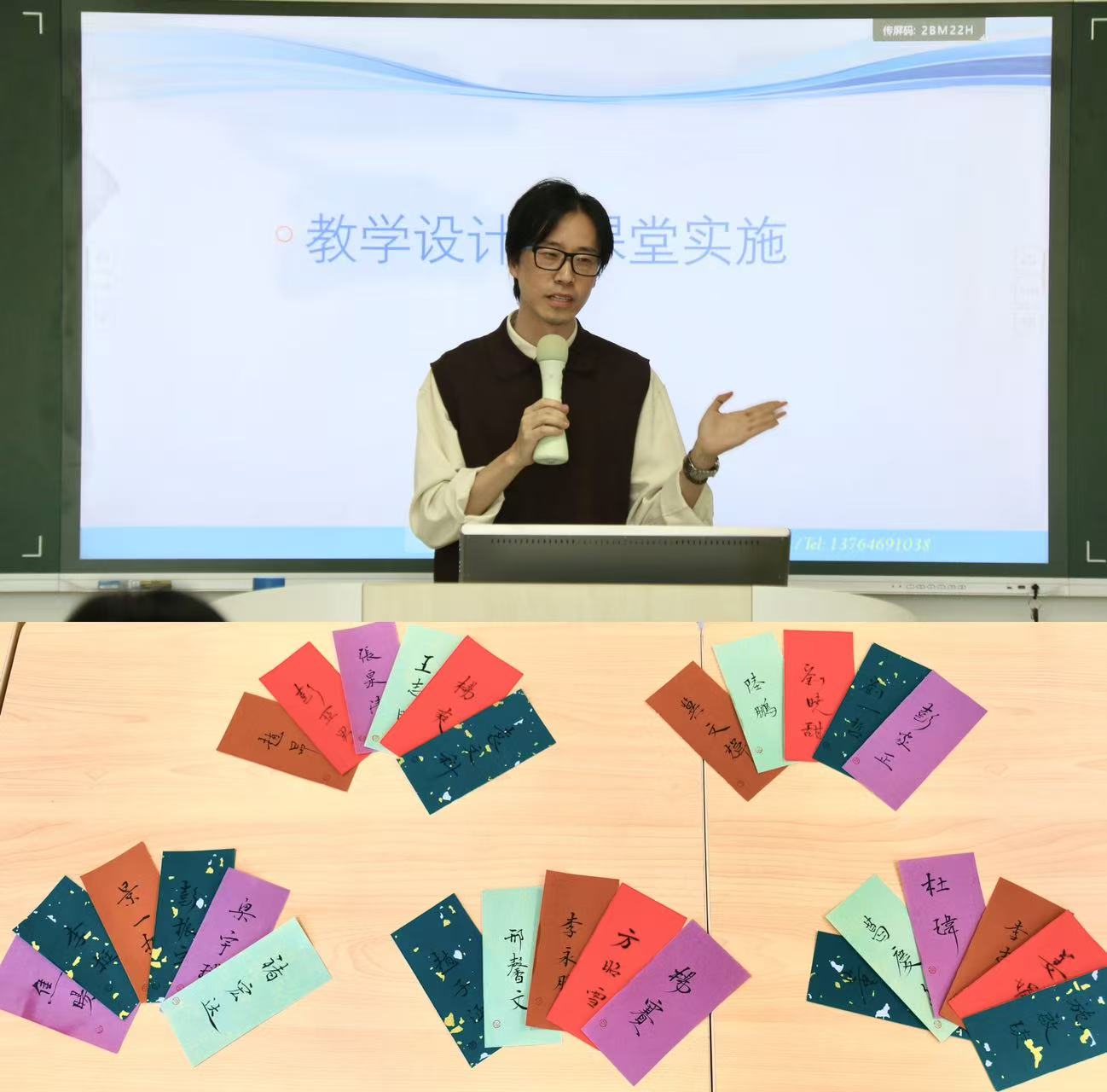 开班第一课,上海市高校教师资格认定教学能力测试评审专家、民航乘务学院英语学科带头人高锋教授以《教学设计与课堂实施》为题,剖析教师专业发展的基本历程。从宏观层面的高校教师的师德与素养,到具体实践的高校教资教学能力注意要点,从不同类别课堂的教学设计策略,到在线课程建设的思路和实施,高锋以有趣、有料、有效、有人的"四有课堂"理念为基点,为新手教师提供了新颖的课堂教学视角与丰富的辅助教学工具。课程结束,多才多艺的他还为参加工作坊活动的老师带来了自制的名笺和书签作为开班礼物,老师们都表示感到既暖心又惊喜。