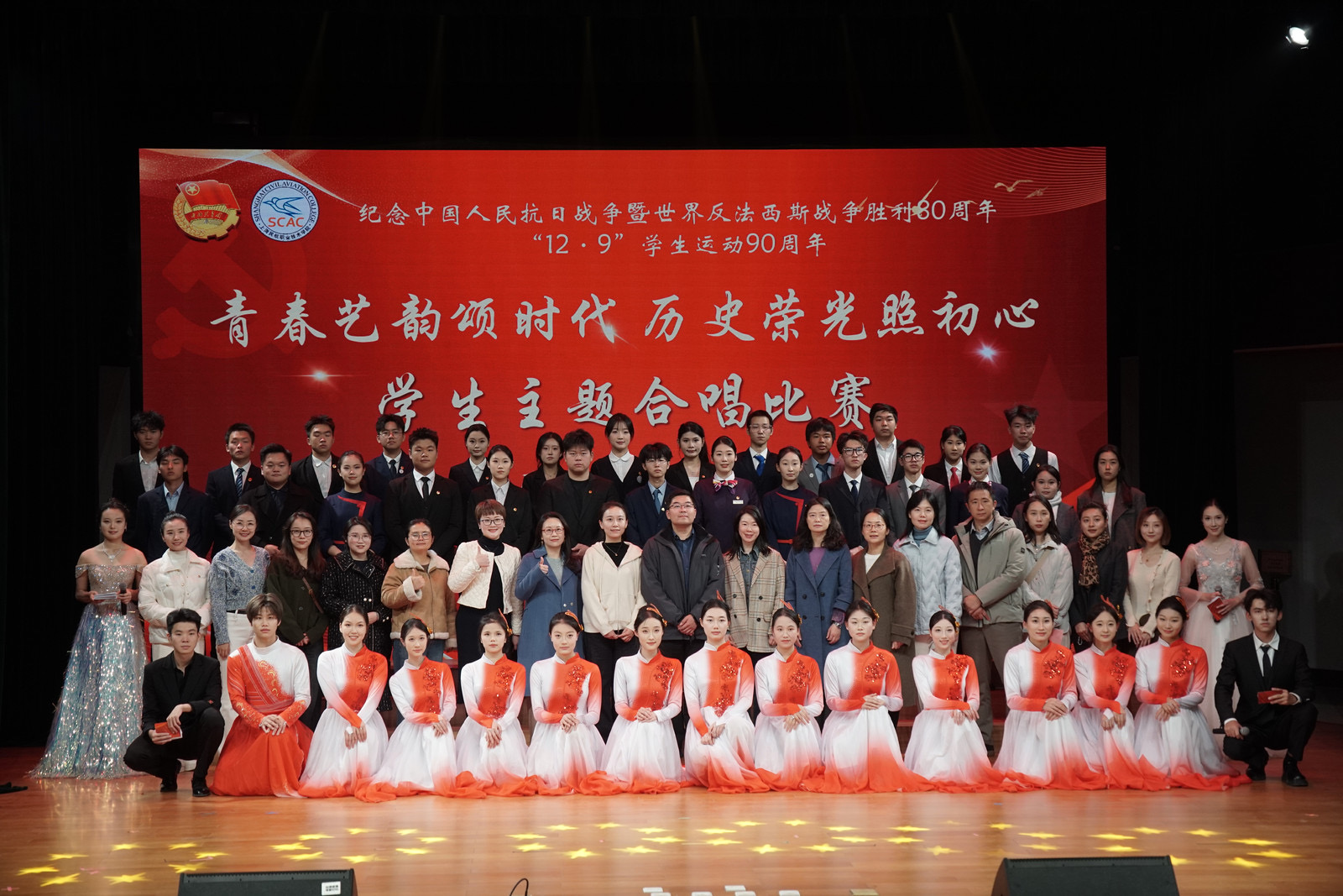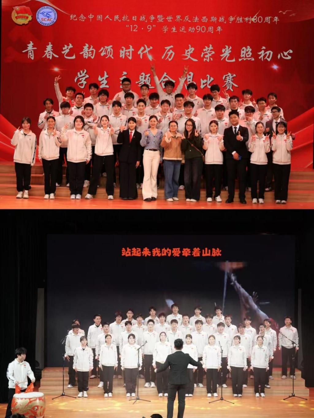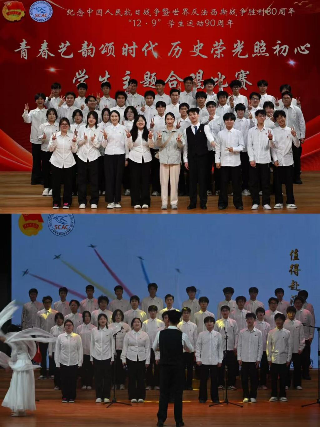 此次活动不仅是一场音乐的盛宴,更是一次精神的共振,民航人共同完成了一次对民族根脉的追寻、对集体身份的确认以及对未来使命的思考。 纪念中国人民抗日战争暨世界反法西斯战争胜利80周年,我们铭记的,是历史的悲壮与荣光;纪念“12·9”学生运动90周年,我们肩负的,是时代的使命与担当。愿民航学子永葆这份初心,在未来的蓝天上,书写无愧于时代、无愧于祖国的壮丽篇章!