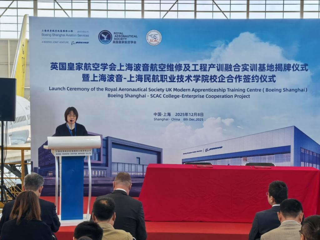 学院副院长罗玉梅出席仪式并代表学院签约,同时受邀参加英国皇家航空学会上海波音航空维修及工程产训融合实训基地揭牌仪式。此次合作标志学院与波音公司迈入产教深度融合的新阶段。