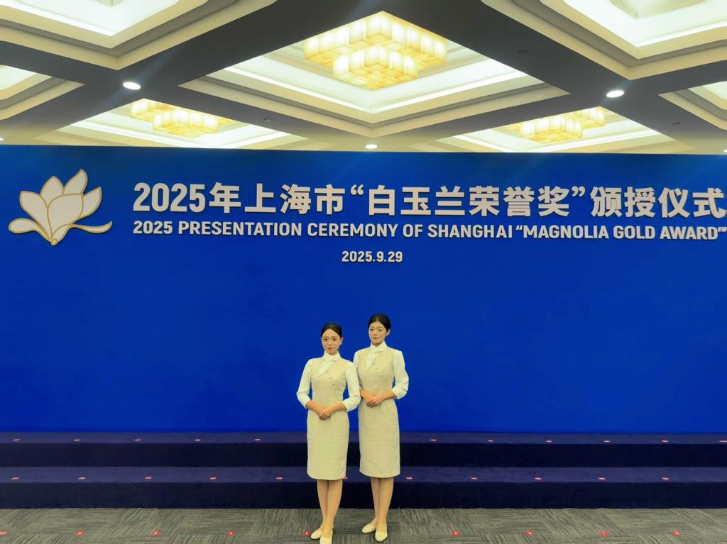 秋兰葳蕤,申城溢彩。9月29日,备受瞩目的2025年“上海市荣誉市民”“白玉兰荣誉奖”颁授仪式隆重举行。上海市市长龚正为获奖者颁授奖章、证书,并会见了“荣誉市民”。各界嘉宾齐聚一堂,共同见证这一荣誉时刻。在庄重而热烈的仪式现场,一抹亮丽的青春风景线格外引人注目——她们正是来自上海民航职业技术学院空港管理学院学生民航服务礼仪示范组的同学们。凭借专业的素养、优雅的仪态和饱满的热情,她们为颁授仪式提供了高标准、零失误的全程礼仪服务,赢得了与会中外嘉宾的高度赞誉。