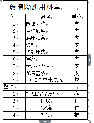 八、 材料要求:见下表,具体形式可与联系人联系参照现场实样。